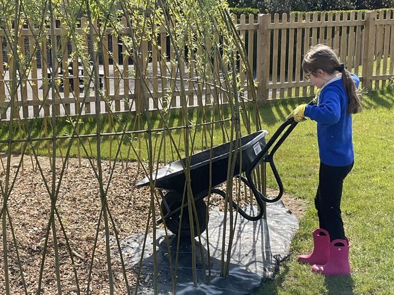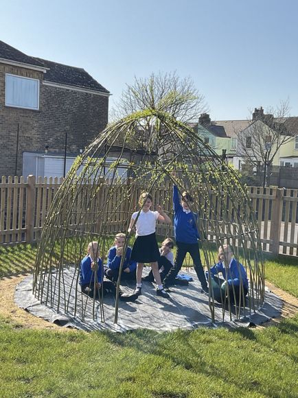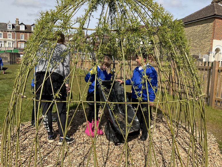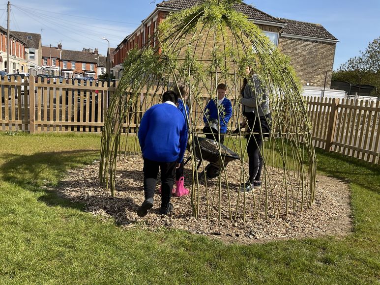 Our willow tree dome is starting to grow and the children love their new seating area.